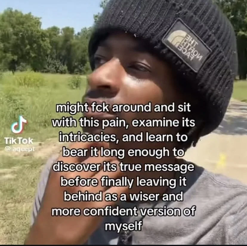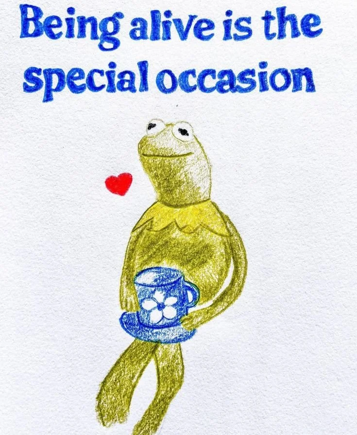 I have two cats, Ophelia (18 y.o.) (yes really) and Fish (4 y.o.). They will likely make an appearance during telehealth sessions. My favorite color is green as I’m sure you’ve gathered and I’ve included some of my favorite memes I’ve stumbled upon being chronically online.